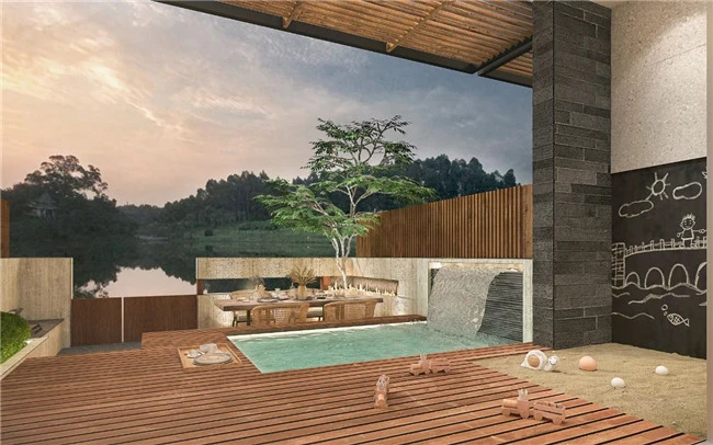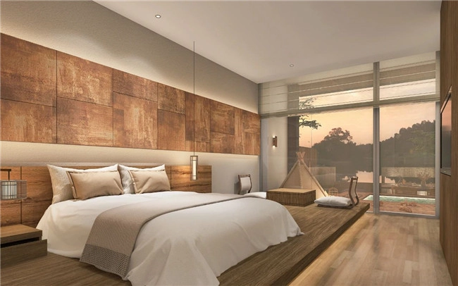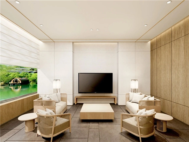 (南京高淳雅达酒店接待大厅效果图) 酒店内共规划有约160间客房,3个特色餐厅(含早餐厅),3个会议室,2个健身房,以及酒吧、书吧、儿童活动室等,是一家高端亲子度假酒店。 (南京高淳雅达酒店客房效果图) 酒店中的客房绝大多数临水,且主打品质至上、极简主义,奉行国潮自信与日式和风并重的美学意识,强调“入则宁静、出则繁华”的居住体验。 (南京高淳雅达酒店客房效果图) 酒店还重点打造了部分以亲子休闲为主题的特色客房,从儿童安全、好玩、亲子互动、寓教于乐、休闲五个方面来设计亲子客房的所有细节,必将让萌娃们喜爱不已。 (南京高淳雅达酒店亲子主题客房效果图) 酒店餐饮定位高端精致餐饮,以高端私人会所模式运营。菜品将主打融合徽菜的本地菜,并结合杭帮菜、粤菜等高端菜肴特色,融入精致日料的装盘及烹饪手法,将创造出本地餐饮的新高度。